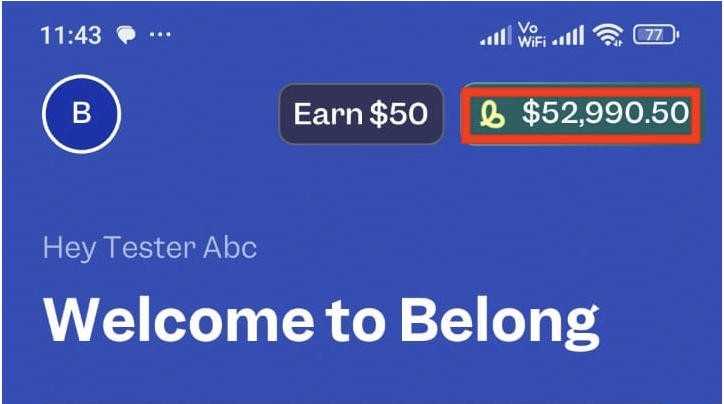 Your Belong wallet details should be shown like: