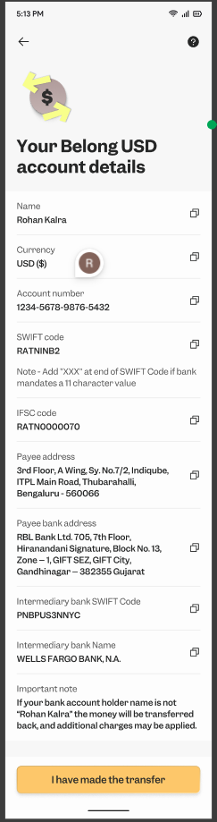 Each Belong customer will have a Belong wallet. You will be able to transfer money from your UAE bank account to it and invest in GIFT City products via the wallet. It’s similar to a Zerodha or Groww wallet which you may be using for investments in ...