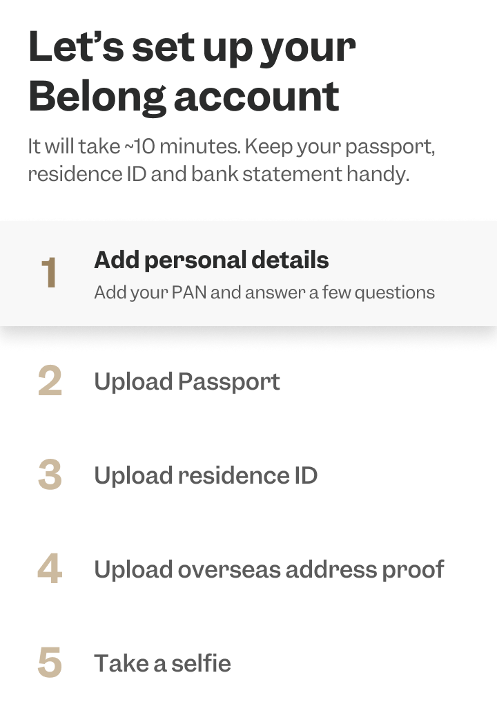 In case you don't have access to Aadhaar OTP, we won't be able to onboard you unless you're in UAE. In UAE, we have an option do a doorstep KYC for you.