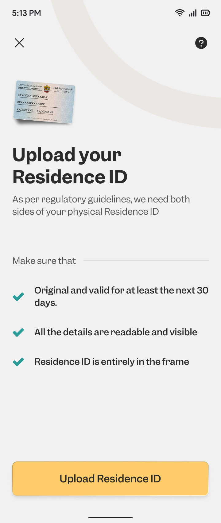 Please upload both sides of your physical residence ID. The residence ID should be valid for the next 30 days at the time of upload.