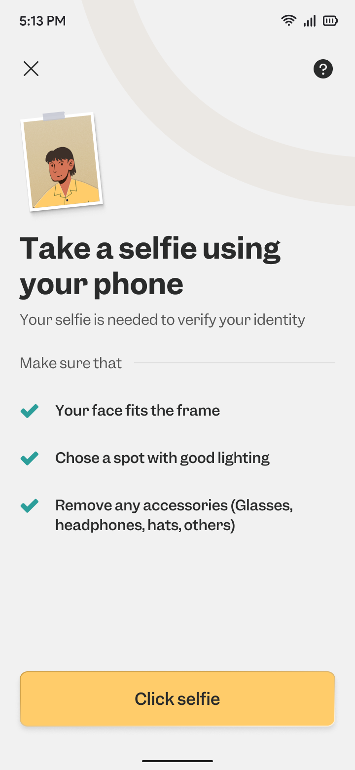 Kindly upload a clear selfie to validate your identity.