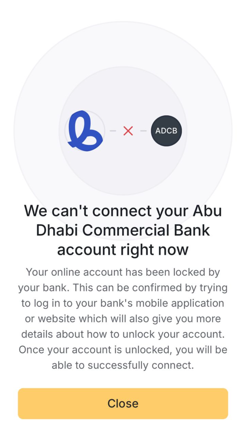 I am not able to link my Abu Dhabi Commercial Bank (ADCB) account in Belong's account linking process.