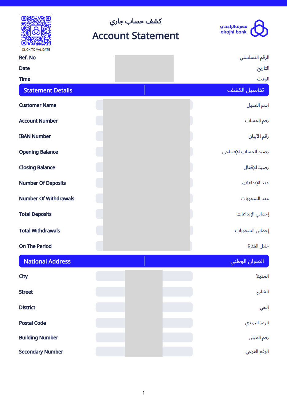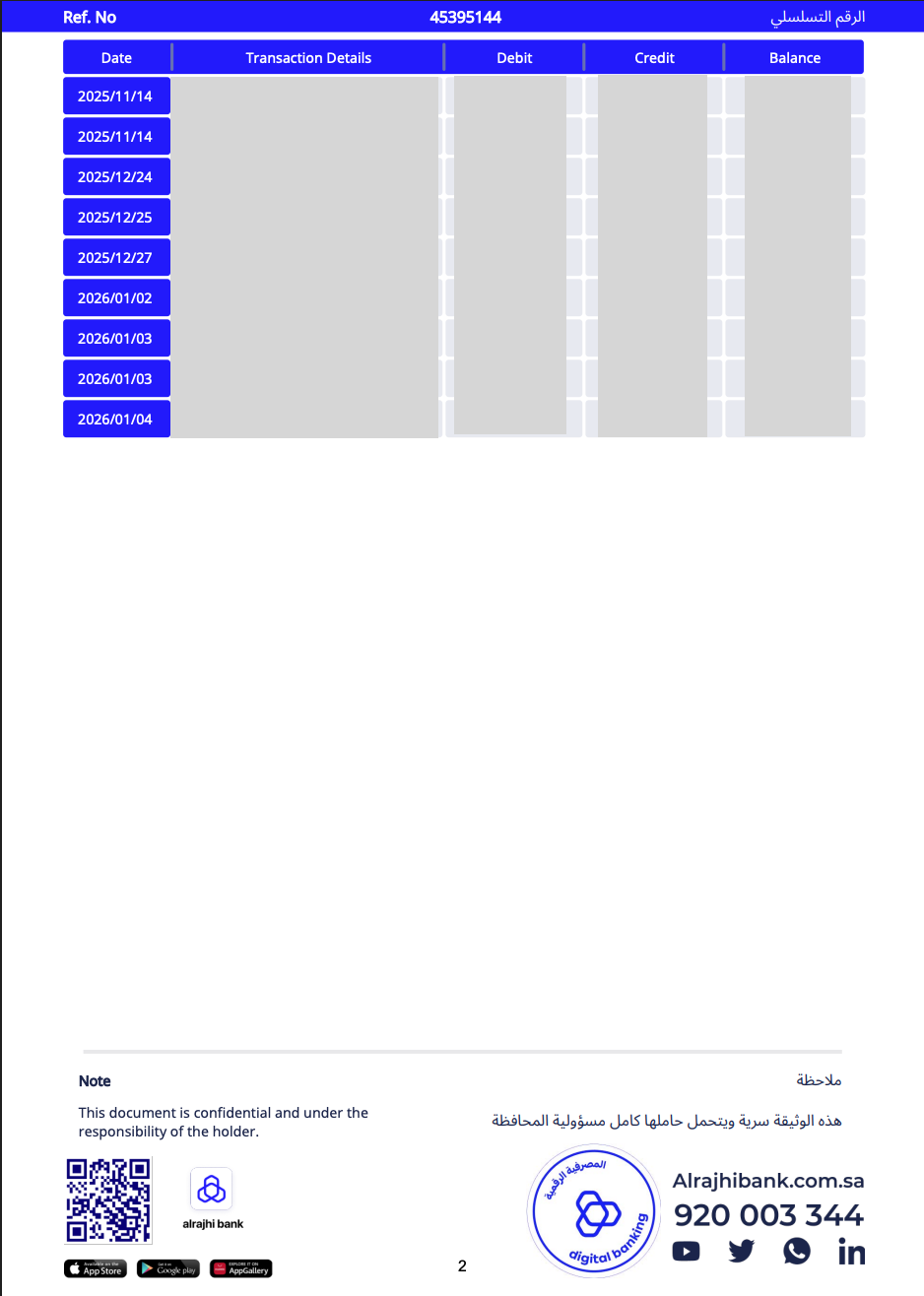 Sample bank statement - Alrajhi Bank (Saudi Arabia)