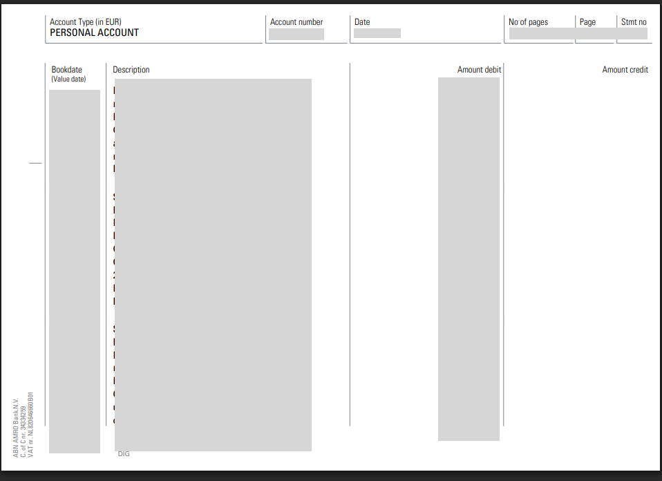 Sample bank statement - ABN AMRO bank account (Netherlands)