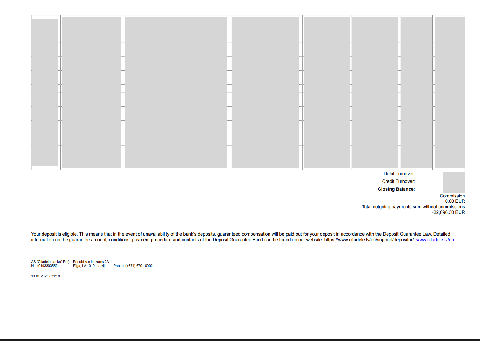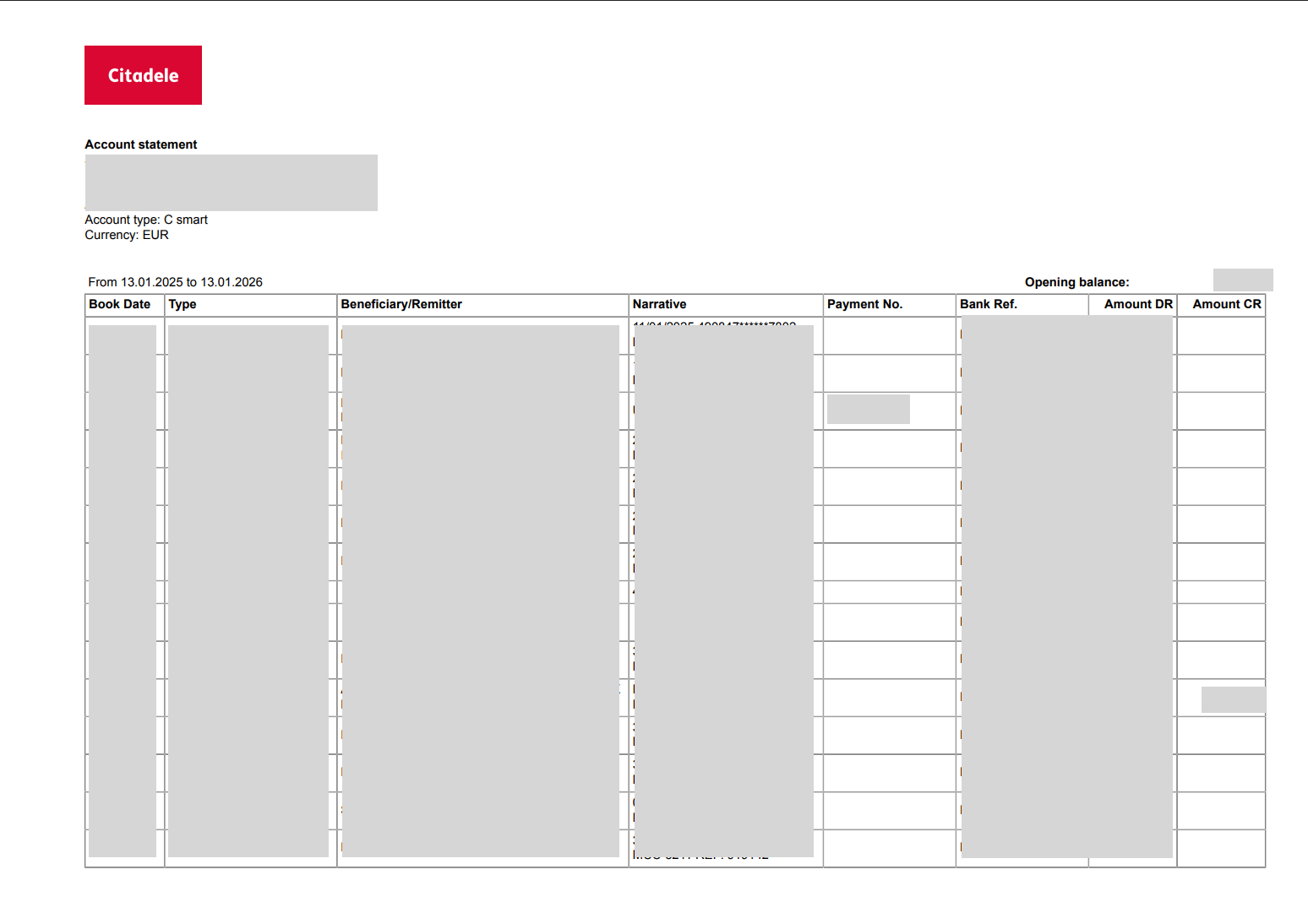 Sample bank statement - Citadele Bank (Latvia)