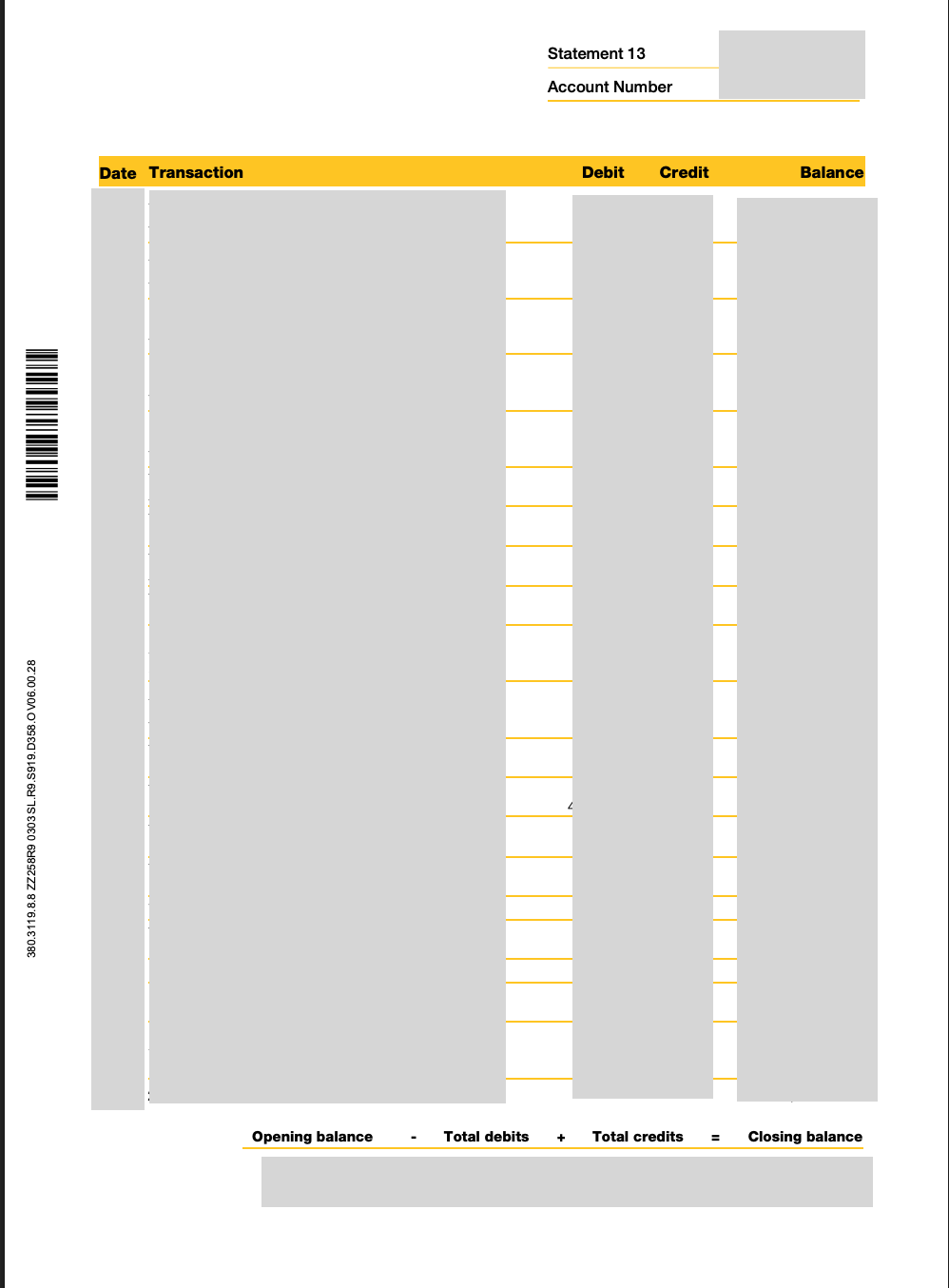 Sample bank statement - OCBC bank account (Singapore)