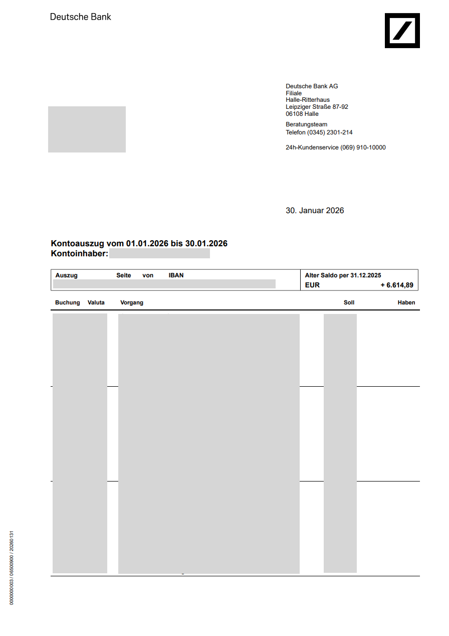 Sample bank statement - Deutsche bank account (Germany)