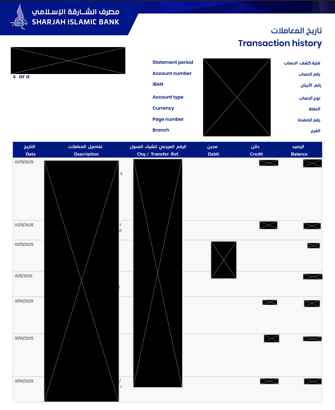 Sample bank statement - Sharjah Islamic bank (UAE)