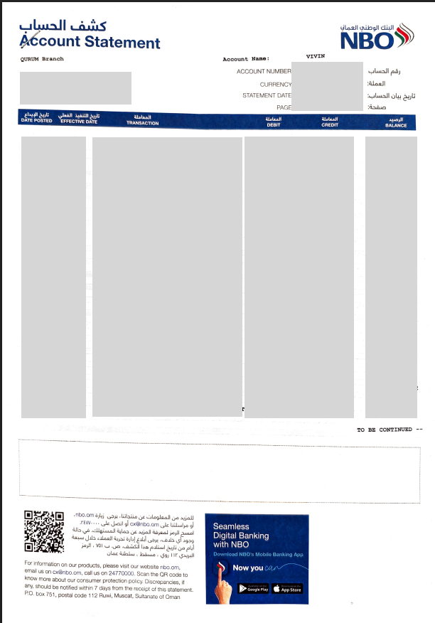 Sample bank statement - National Bank of Bahrain (Bahrain)