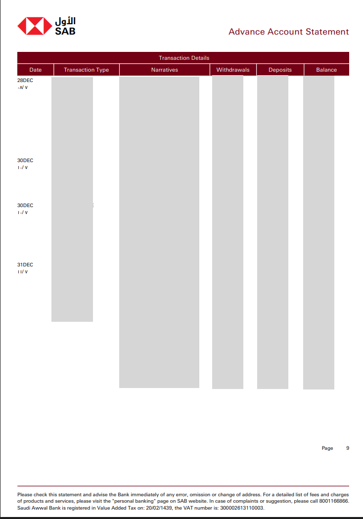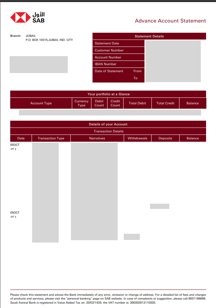 Sample bank statement - Alrajhi Bank (Saudi Arabia)