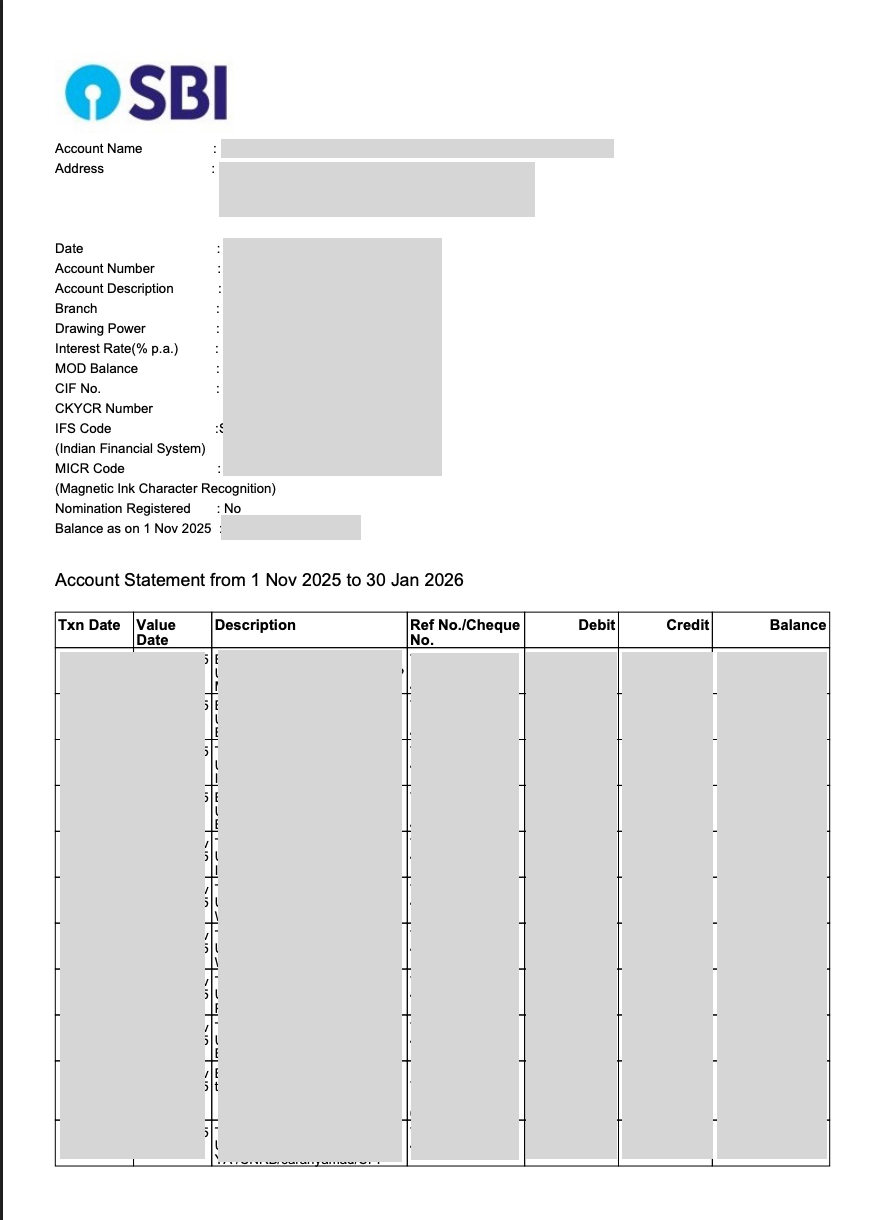 To complete your onboarding we would need your latest bank statement (less than 3 months old) as proof of address. Requirements in the bank statement Your Indian Overseas Bank NRE account statement should have: Name as per your passport Overseas ...