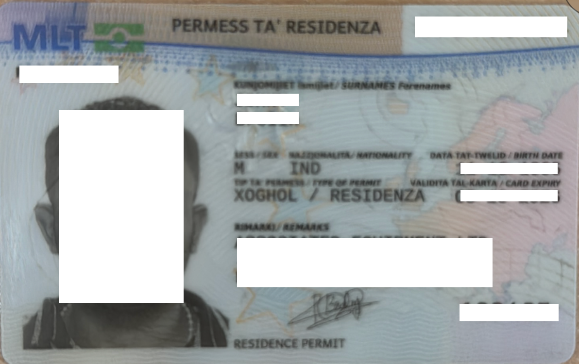 For NRIs residing in Malta, we accept a valid PERMESS TA' RESIDENZA as resident ID for onboarding and verification purposes. Document Format Requirements The resident IDs must be submitted as an official PDF document issued by the relevant authority. ...